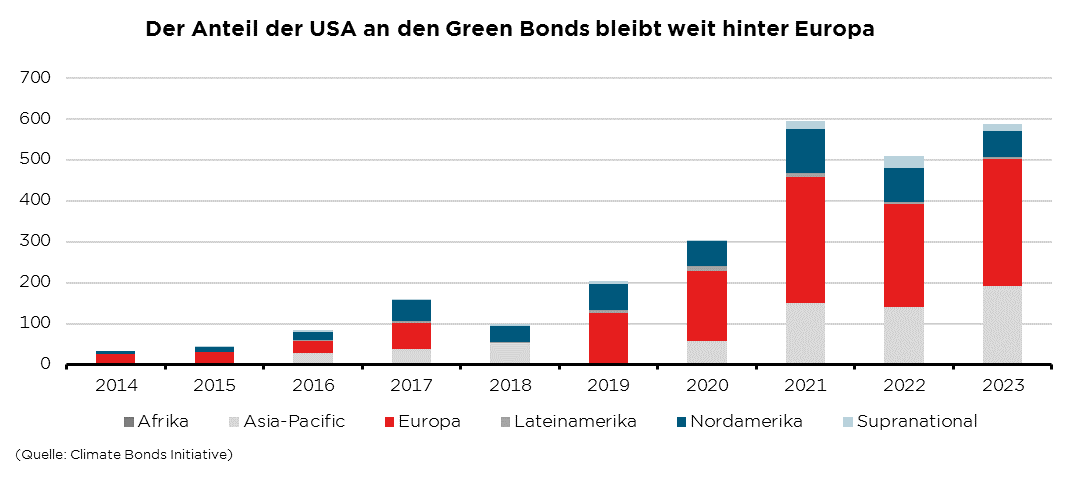 Außerdem finden viele nachhaltige Projekte ohnehin außerhalb der USA statt. Für Europa ist die entscheidende Frage, wie auf EU-Level weiter entschieden wird. Falls sich die EU-Taxonomie und der damit verbundene EU-Green Bond Standard weiterentwickelt, könnte dies in der EU zu Anreizen bei Unternehmen führen. Bisher folgen die zweckgebundenen Investitionen größtenteils den ICMA-Richtlinien, welche jedoch wesentliche Reportingfreiheiten anbieten und nicht geprüft werden müssen.