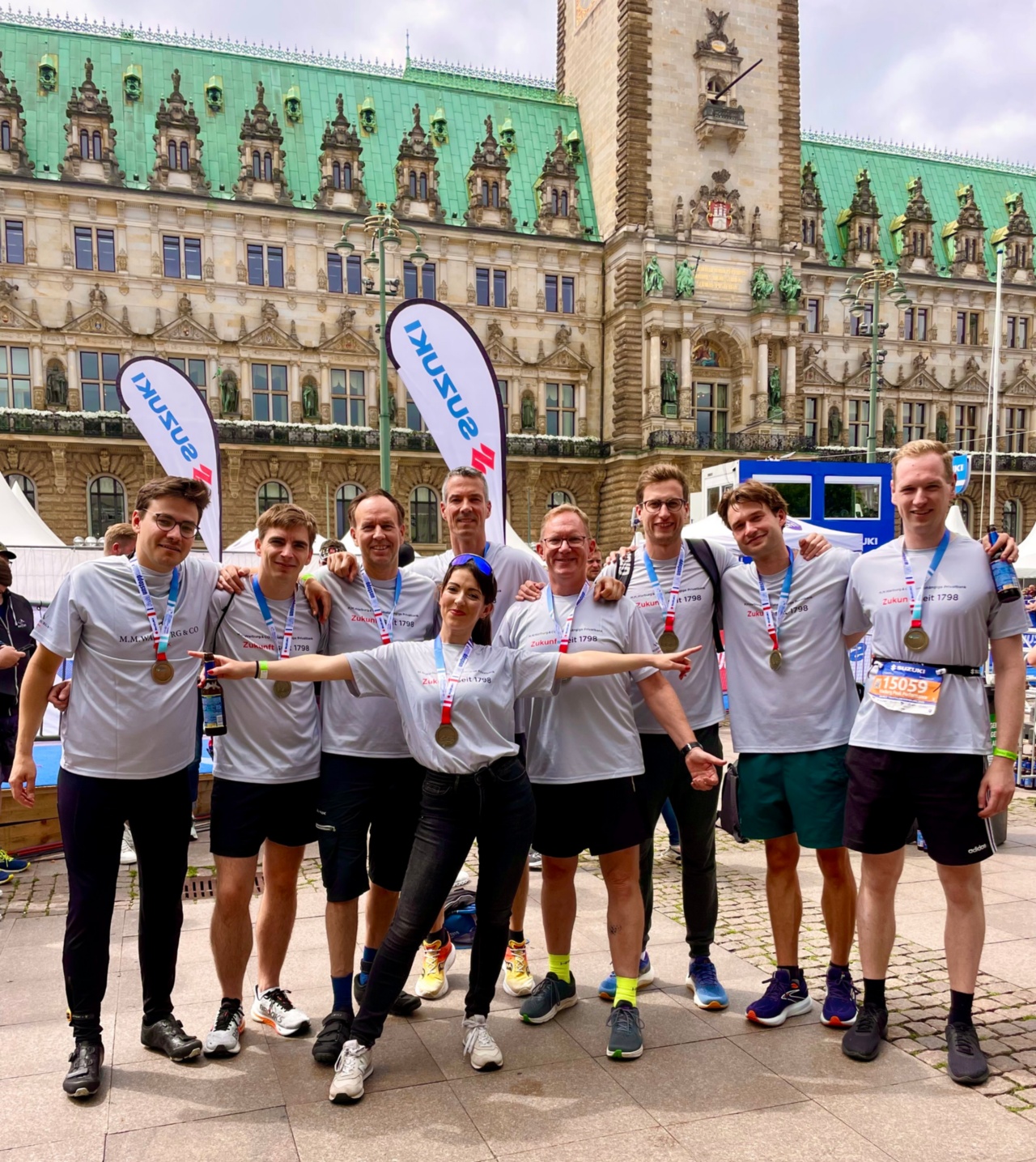 Wir nehmen es sportlich: Wie auch in den vergangenen Jahren waren wir am 13.07.25 beim Hamburg Triathlon dabei. 9 Kolleginnen und Kollegen in 3 Staffel-Teams zeigten ihre Fitness sowie ambitionierten Teamgeist und meisterten gemeinsam die olympische Distanz!