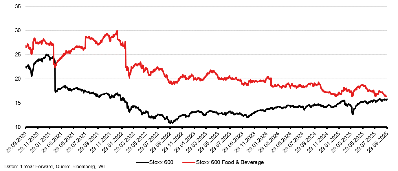 KGV zwischen Stoxx 600 und Stoxx 600 Food & Beverage